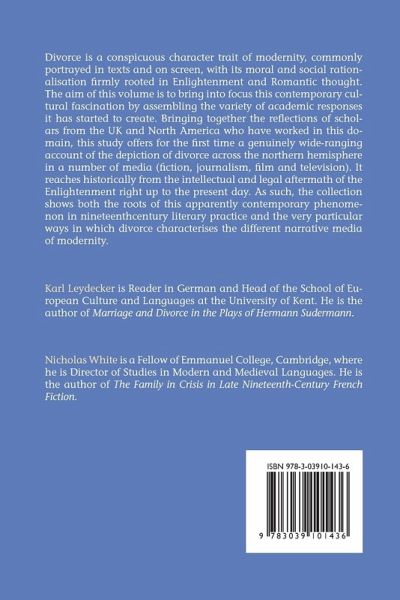 Divorce is a conspicuous character trait of modernity, commonly portrayed in texts and on screen, with its moral and social rationalisation firmly rooted in Enlightenment and Romantic thought. The aim of this volume is to bring into focus this contemporary cultural fascination by assembling the variety of academic responses it has started to create. Bringing together the reflections of scholars from the UK and North America who have worked in this domain, this study offers for the first time a genuinely wide-ranging account of the depiction of divorce across the northern hemisphere in a number of media (fiction, journalism, film and television). It reaches historically from the intellectual and legal aftermath of the Enlightenment right up to the present day. As such, the collection shows both the roots of this apparently contemporary phenomenon in nineteenth-century literary practice and the very particular ways in which divorce characterises the different narrative media of modernity.