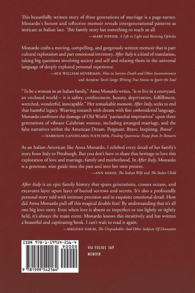 "After Italy: A Family Memoir of Arranged Marriage" is the story of marriages across three generations. Starting from a marriage brokered to facilitate immigration from Southern Italy to Braddock, PA, a steel town outside of Pittsburgh, before and immediately after WWII, this memoir explores the multigenerational impact of arranged marriage.