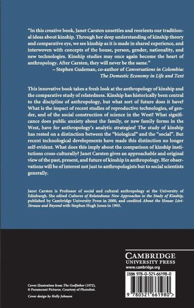 This innovative book takes a look at the anthropology of kinship and the comparative study of relatedness. Kinship has historically been central to the discipline of anthropology but what sort of future does it have? What is the impact of recent studies of reproductive technologies, of gender, and of the social construction of science in the West? What significance does public anxiety about the family, or new family forms in the West have for anthropology's analytic strategies? The study of kinship has rested on a distinction between the 'biological' and the 'social'. But recent technological developments have made this distinction no longer self-evident. What does this imply about the comparison of kinship institutions cross-culturally? Janet Carsten gives an approachable view of the past, present, and future of kinship in anthropology, which will be of interest not just to anthropologists but to social scientists generally.
