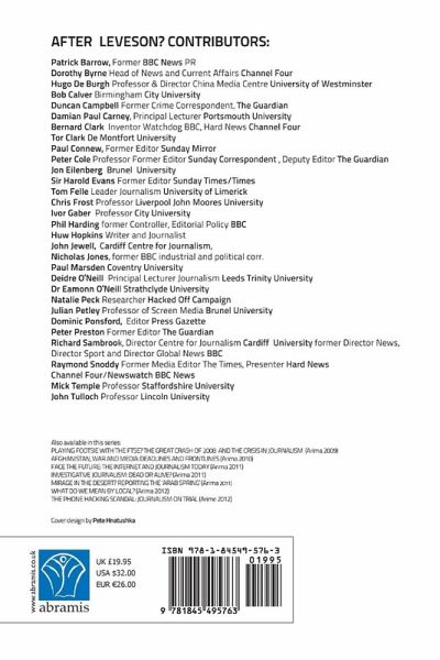Dorothy Byrne Head of News and Current Affairs Channel Four Hugo De Burgh Professor & Director China Media Centre University of Westminster Bob Calver Birmingham City University Duncan Campbell Former Crime Correspondent, The Guardian Damian Paul Carney, Principal Lecturer Portsmouth University Bernard Clark Inventor Watchdog BBC, Hard News Channel Four Tor Clark De Montfort University Paul Connew, Former Editor Sunday Mirror Peter Cole Professor Former Editor Sunday Correspondent, Deputy Editor The Guardian Jon Eilenberg Brunel University Sir Harold Evans Former Editor Sunday Times/Times Tom Felle Leader Journalism University of Limerick Chris Frost Professor Liverpool John Moores University Ivor Gaber Professor City University Phil Harding former Controller, Editorial Policy BBC Huw Hopkins Writer and Journalist John Jewell, Cardiff Centre for Journalism Nicholas Jones, former BBC industrial and political corr. Paul Marsden Coventry University Deidre O'Neill Principal Lecturer Journalism Leeds Trinity University Dr Eamonn O'Neill Strathclyde University Natalie Peck Researcher Hacked Off Campaign Julian Petley Professor of Screen Media Brunel University Dominic Ponsford, Editor Press Gazette Peter Preston Former Editor The Guardian Richard Sambrook, Director Centre for Journalism Cardiff University former Director News, Director Sport and Director Global News BBC Raymond Snoddy Former Media Editor The Times, Presenter Hard News Channel Four/Newswatch BBC News Mick Temple Professor Staffordshire University John Tulloch Professor Lincoln University