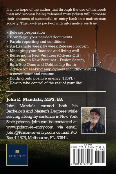 Author John Mandala earned both his Bachelor's and Master's degrees while serving a lengthy sentence in New York State's tougher prisons. He continues his quest for self-betterment through numerous charitable activities and projects such as the writing and distribution of this book. John can be contacted at John@prison-reentry.com and donations can be forwarded to his nonprofit: Breathingspacefl.org, or: P.O. Box 411575, Melbourne, FL 32941.