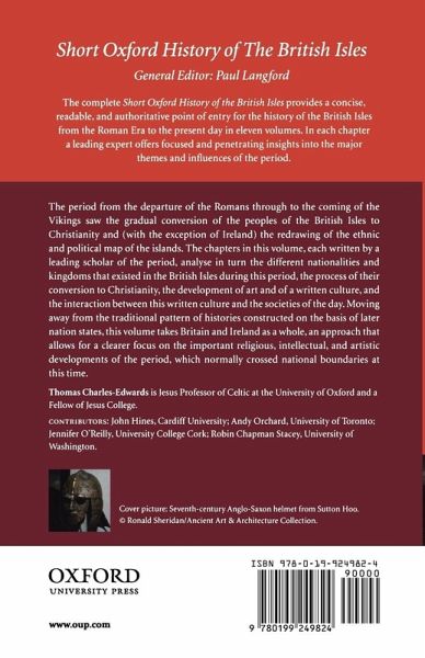 The chapters in this volume, each written by a leading scholar of the period, analyze in turn the different nationalities and kingdoms that existed in the British Isles from the end of the Roman empire to the coming of the Vikings, the process of conversion to Christianity, the development of art and of a written culture, and the interaction between this written culture and the societies of the day.
