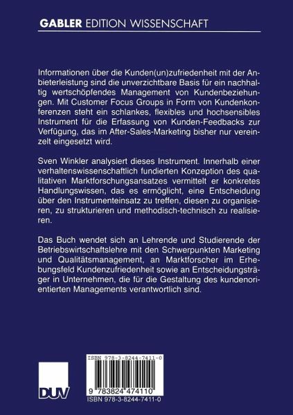 Sven Winkler analysiert dieses Instrument. Innerhalb einer verhaltenswissenschaftlich fundierten Konzeption des qualitativen Marktforschungsansatzes vermittelt er konkretes Handlungswissen, das es ermöglicht, eine Entscheidung über den Instrumenteinsatz zu treffen, diesen zu organisieren, zu strukturieren und methodisch-technisch zu realisieren.