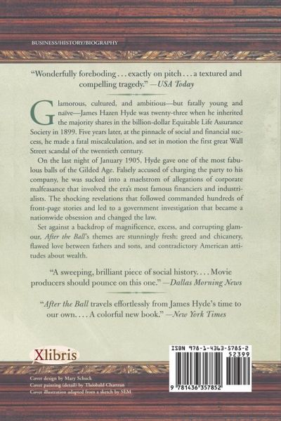 Glamorous, cultured, and ambitious -- but fatally young and nai ve -- James Hazen Hyde was twenty-three when he inherited the majority shares in the billion-dollar Equitable Life Assurance Society in 1899. Five years later, at the pinnacle of social and financial success, he made a fatal miscalculation, and set in motion the first great Wall Street scandal of the twentieth century. On the last night of January 1905, Hyde gave one of the most fabulous balls of the Gilded Age. Falsely accused of charging the party to his company, he was sucked into a maelstrom of allegations of corporate malfeasance that involved the era's most famous financiers and industrialists. The shocking revelations that followed commanded hundreds of front-page stories and led to a government investigation that became a nationwide obsession and changed the law. Set against a backdrop of magnificence, excess, and corrupting glamour, "After the Ball"'s themes are stunningly fresh: greed and chicanery, flawed love between fathers and sons, and contradictory American attitudes about wealth.