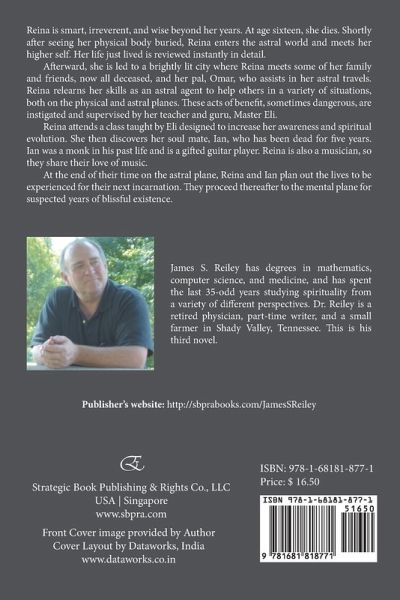 Reina is smart, irreverent, and wise beyond her years. At age sixteen, she dies. Shortly after seeing her physical body buried, Reina enters the astral world and meets her higher self. Her life just lived is reviewed instantly in detail. Afterward, she is led to a brightly lit city where Reina meets some of her family and friends, now all deceased, and her pal, Omar, who assists in her astral travels. Reina relearns her skills as an astral agent to help others in a variety of situations, both on the physical and astral planes. These acts of benefit, sometimes dangerous, are instigated and supervised by her teacher and guru, Master Eli. Reina attends a class taught by Eli designed to increase her awareness and spiritual evolution. She then discovers her soul mate, Ian, who has been dead for five years. Ian was a monk in his past life and is a gifted guitar player. Reina is also a musician, so they share their love of music. At the end of their time on the astral plane, Reina and Ian plan out the lives to be experienced for their next incarnation. They proceed thereafter to the mental plane for suspected years of blissful existence. James S. Reiley has degrees in mathematics, computer science, and medicine, and has spent the last 35-odd years studying spirituality from a variety of different perspectives. Dr. Reiley is a retired physician, part-time writer, and a small farmer in Shady Valley, Tennessee. This is his third novel. Publisher's website: http://sbprabooks.com/JamesSReiley