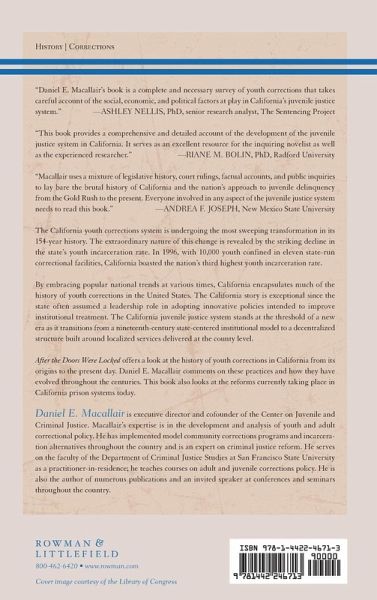 The California youth corrections system is undergoing the most sweeping transformation in its 154-year history. The extraordinary nature of this change is revealed by the striking decline in the state's youth incarceration rate. In 1996, with 10,000 youth confined in 11 state-run correctional facilities, California boasted the nation's third highest youth incarceration rate. Now, with only 800 youth remaining in a system comprised of just three institutions, California has one of the nation's lowest youth incarceration rate. How did such unprecedented changes occur and what were the crucial conditions that produced them? Daniel E. Macallair answers these questions through an examination of the California youth corrections system's origins and evolution, and the patterns and practices that ultimately led to its demise. Beginning in the 19th century, California followed national juvenile justice trends by consigning abused, neglected, and delinquent youth to congregate care institutions known as reform schools. These institutions were characterized by their emphasis on regimentation, rigid structure, and harsh discipline. Behind the walls of these institutions, children and youth, who ranged in age from eight to 21, were subjected to unspeakable cruelties. Despite frequent public outcry, life in California reform schools changed little from the opening of the San Francisco Industrial School in 1859 to the dissolution of the California Youth Authority (CYA) in 2005. By embracing popular national trends at various times, California encapsulates much of the history of youth corrections in the United States. The California story is exceptional since the state often assumed a leadership role in adopting innovative policies intended to improve institutional treatment. The California juvenile justice system stands at the threshold of a new era as it transitions from a 19th century state-centered institutional model to a decentralized structure built around localized services delivered at the county level. After the Doors Were Locked is the first to chronicle the unique history of youth corrections and institutional care in California and analyze the origins of today's reform efforts. This book offers valuable information and guidance to current and future generations of policy makers, administrators, judges, advocates, students and scholars.