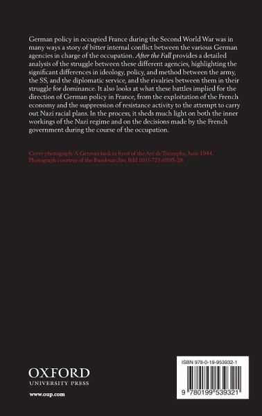 German policy in occupied France during the Second World War was in many ways a story of bitter internal conflict between the various German agencies in charge of the occupation. After the Fall provides a detailed analysis of the struggle between these different agencies, highlighting the significant differences in ideology, policy, and method between the army, the SS, and the diplomatic service, and the rivalries between them in their struggle for dominance. While the military government tried to exploit French industrial resources, the SS was focused more exclusively upon pursuing Nazi racial policies (often to the detriment of the wider military effort). In turn, the SS felt frustrated in the pursuit of their racial policies by a lack of assistance from the military. Meanwhile, the diplomatic service was frustrated in its attempts to spread Nazi propaganda and promote Franco-German reconciliation by Hitler's refusal to approve the substantial economic or political concessions that were needed to make this policy effective. Outside this circle of rivalry, caught in a battle that they did not understand, the French leaders tried to demonstrate their loyalty to Hitler's New Order by cooperating with the various competing German agencies. After the Fall examines how these battles developed and what they implied for the direction of German policy in France, from the exploitation of the French economy and the suppression of resistance activity to the attempt to carry out Nazi racial plans. In the process, it sheds much light on both the inner workings of the Nazi regime and on the decisions made by the French government during the course of the occupation.