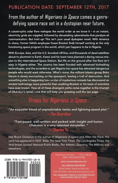 Deji Bryce Olukotun is the author of Nigerians in Space. His work has been featured in Vice, Slate, The New York Times, The Los Angeles Times, The Los Angeles Review of Books, the Wall Street Journal, National Public Radio, The Atlantic, Guernica, The Millions, World Literature Today, ESPN, and elsewhere. After the Flare is the second novel in the Nigerians in Space series.