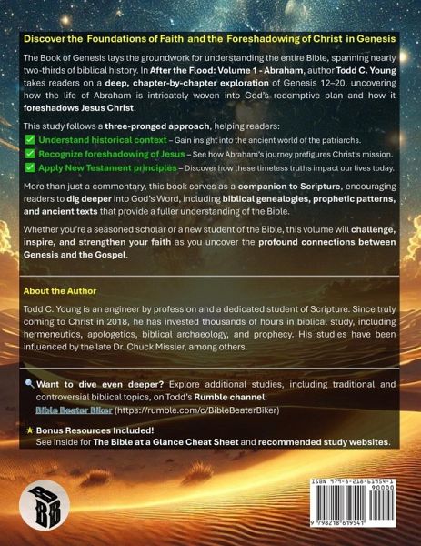 Discover the Foundations of Faith and the Foreshadowing of Christ in GenesisThe Book of Genesis lays the groundwork for understanding the entire Bible, spanning nearly two-thirds of biblical history. In After the Flood: Volume 1 - Abraham, author Todd C. Young takes readers on a deep, chapter-by-chapter exploration of Genesis 12-20, uncovering how the life of Abraham is intricately woven into God's redemptive plan and how it foreshadows Jesus Christ.This study follows a three-pronged approach, helping readers:¿ Understand historical context - Gain insight into the ancient world of the patriarchs.¿ Recognize foreshadowing of Jesus - See how Abraham's journey prefigures Christ's mission.¿ Apply New Testament principles - Discover how these timeless truths impact our lives today.More than just a commentary, this book serves as a companion to Scripture, encouraging readers to dig deeper into God's Word, including biblical genealogies, prophetic patterns, and ancient texts that provide a fuller understanding of the Bible.Whether you're a seasoned scholar or a new student of the Bible, this volume will challenge, inspire, and strengthen your faith as you uncover the profound connections between Genesis and the Gospel.