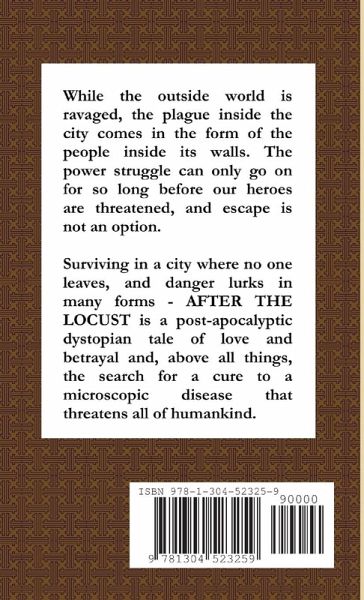 Surviving in a city where no one leaves - surviving in a city where danger lurks in many forms - AFTER THE LOCUST is a post-apocalyptic dystopian tale of love and betrayal and above all things, the search for a cure to a manmade disease that threatens all of humankind.