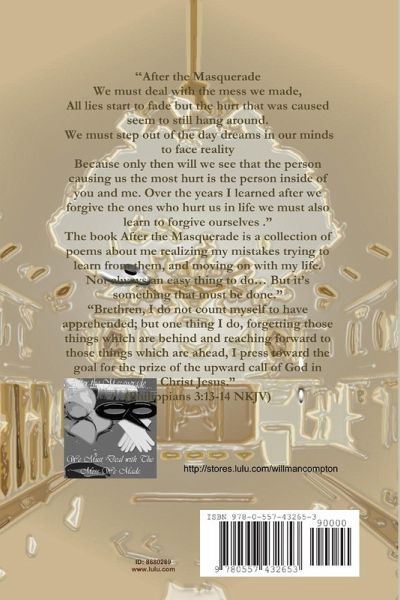 "After the Masquerade We must deal with the mess we made, All lies start to fade but the hurt that was caused seems to still hang around. We must step out of the day dreams in our minds to face reality. Because only then will we see that the person causing us the most hurt is the person inside of you and me. Over the years I learned after we forgive the ones who hurt us in life we must also learn to forgive ourselves."