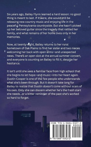 Perfect for music-loving fans of Nicholas Sparks' Dreamland and Lucy Score's Things We Never Got Over, author Elena Goudelias delivers a small-town contemporary romance that is vibrant, addictive, and heartwarming. Vividly set and full of lovable characters, After the Music is the perfect feel-good hometown romance for anyone seeking hope and inspiration. At twenty-two, Bailey Flynn learned a hard lesson: no good thing is meant to last. If it were, she would be releasing new country music and enjoying her life in the peaceful Pennsylvania countryside. Instead, she is still reeling from a family tragedy that nearly destroyed everything, and she hasn't been able to pick up her beloved guitar since. Six years later, twenty-eight-year-old Bailey returns to her rural hometown of Oak Plains. When Bailey sees a familiar face from high school during a visit to the local hardware store, she finds herself revisiting the past in a new light. Dustin Cooper is one of the few people who truly understand what she's been through, and his unflagging patience and compassion toward her are almost overwhelming. Their instant chemistry and shared history are addictively comforting, and suddenly Bailey finds herself falling for him faster than she ever has before. When Bailey's family begs her to return to the stage and sing at the town's annual summer concert, Bailey realizes her old wounds are far from healed. Facing another major disappointment is almost too much to bear. Can she find the courage to let hope return to her heart, heal from her tragic past, and fall back in love with country music along the way? Click "Add to Cart" today to find out!