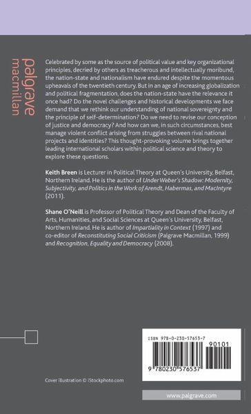 Introduction: A Postnationalist Era?; K.Breen & S.O'Neill PART I: NATIONALISM NOW - THEORETICAL AND EMPIRICAL REFLECTIONS Nationalism, Ethnicity and Self-Determination: A Paradigm Shift; E.Nimni Consociation and Self-Determination Disputes: The Evidence from Northern Ireland and Other Recent Cases; J.McGarry & B.O'Leary Iraq as a New Multi-National State: A Cautious Defence; B.O'Leary Non-Territorial Cultural Autonomy in Contemporary Europe: Reflections on the Revival of an Idea; D.J.Smith The End of Union? Scottish Nationalism and the UK State; M.Keating Nationalism and Violence; J.Hutchinson PART II: NORMATIVE CHALLENGES - DEMOCRACY, IDENTITY AND JUSTICE Against Global Democracy; D.Miller Postnationalist Democratization: Rethinking Nationality, Trust, and Accountability; C.McBride On Voting Ethics for Dual Nationals; D.Weinstock Nations, Sovereignty, and Democratic Legitimacy: On the Boundaries of Political Communities; G.Nootens Dilemmas of Belonging: Multiculturalism in Plural Societies; C.Frost National Commitments and Universal Duties: On the Interrelationship between Domestic and Global Justice; M.Moore Global Egalitarianism or National Self-Determination?; C.Armstrong Index