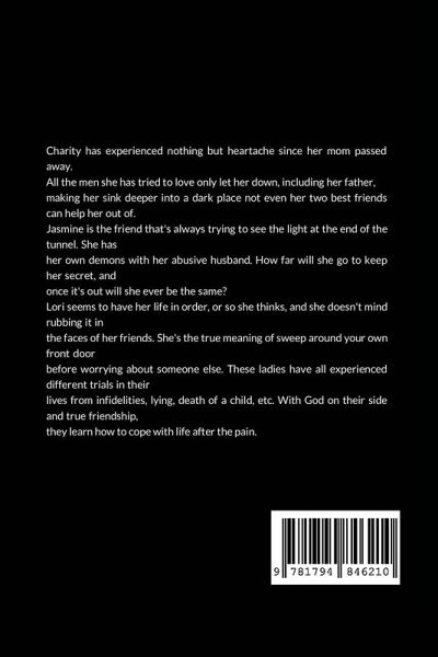 Charity has experienced nothing but heartache since her mom passed away. All the men she has tried to love only let her down, including her father, making her sink deeper into a dark place not even her two best friends can help her out of. Jasmine is the friend that's always trying to see the light at the end of the tunnel. She has her own demons with her abusive husband. How far will she go to keep her secret, and once it's out, will she ever be the same? Lori seems to have her life in order, or so she thinks, and she doesn't mind rubbing it in the faces of her friends. She's the true meaning of sweep around your own front door before worrying about someone else. These ladies have all experienced different trials in their lives from infidelities, lying, death of a child, etc. With God on their side and true friendship, they learn how to cope with life after the pain.