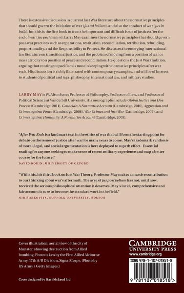 'After War Ends is a landmark text in the ethics of war that will form the starting point for debate on the issues of justice after war for many years to come. May's trademark synthesis of moral, legal and social argumentation is here deployed to superb effect. Essential reading for anyone seeking to make sense of recent military experience and map a better course for the future.' David Rodin, University of Oxford