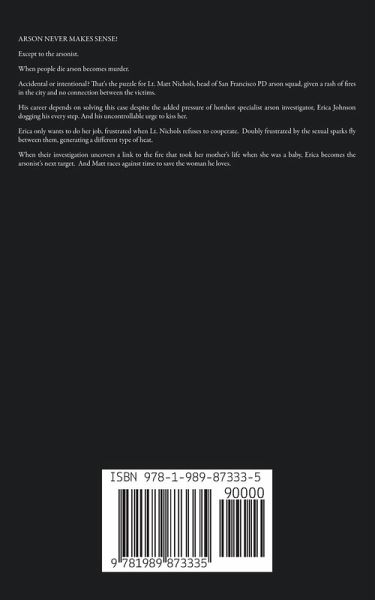 ARSON NEVER MAKES SENSE! Except to the arsonist. When people die arson becomes murder. Accidental or intentional? That's the puzzle for Lt. Matt Nichols, head of San Francisco PD arson squad, given a rash of fires in the city and no connection between the victims. His career depends on solving this case despite the added pressure of hotshot specialist arson investigator, Erica Johnson dogging his every step. And his uncontrollable urge to kiss her. Erica only wants to do her job, frustrated when Lt. Nichols refuses to cooperate. Doubly frustrated by the sexual sparks fly between them, generating a different type of heat. When their investigation uncovers a link to the fire that took her mother's life when she was a baby, Erica becomes the arsonist's next target. And Matt races against time to save the woman he loves.
