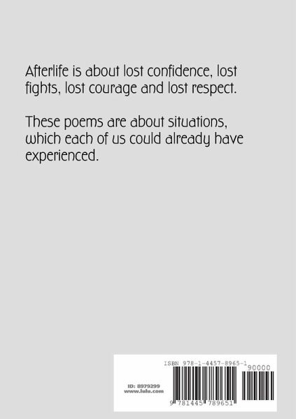 Afterlife is about lost confidence, lost fights, lost courage and lost respect. These poems are about situations, which each of us could already have experienced.