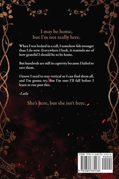 I may be home, but I'm not really here. When I was locked in a cell, I somehow felt stronger than I do now. Everywhere I look, it reminds me of how grateful I should be to be home. But hundreds are still in captivity because I failed to save them. I know I need to stay vertical so I can find them all, and I'm gonna try. But I'm sure I'll fall before I learn to run past this. -Laila _________________________ She's here, but she isn't here. For the last three months, I've dreamed of holding my fiancé in my arms again. Now she's here. I'm holding her, and somehow, it feels like I'm alone. But I'll do what I've always done. I'll push that thought to the back of my mind, hold her tighter, and remind myself that one day, she'll really be here again. One day, I'll have the love of my lives back. One day, we'll save the remaining survivors. One day, we'll get the happy ever after we deserve. One day. -Jeremy