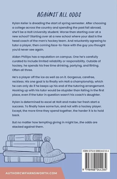 Rylan Keller is dreading the start of spring semester. After choosing a college across the country and spending the past fall abroad, she'll be a Holt University student. Worse than starting over at a new school? Starting over at a new school where your dad is the head coach of the men's hockey team. And reluctantly agreeing to tutor a player, then coming face-to-face with the guy you thought you'd never see again. Aidan Phillips has a reputation on campus. One he's carefully curated to include limited reliability or responsibility. Outside of hockey, he spends his free time drinking, partying, and flirting. Often all three. He's a player off the ice as well as on it. Gorgeous, carefree, reckless. His one goal is to finally win Holt a championship, which he can only do if he keeps up his end of the tutoring arrangement. Hooking up with his tutor would be stupider than failing in the first place, even if the tutor in question wasn't his coach's daughter. Rylan is determined to excel at Holt and make her fresh start a success. To finally have some fun, and not with a hockey player. Except, the more time they spend together, the harder it is to hold back. But no matter how tempting giving in might be...the odds are stacked against them.