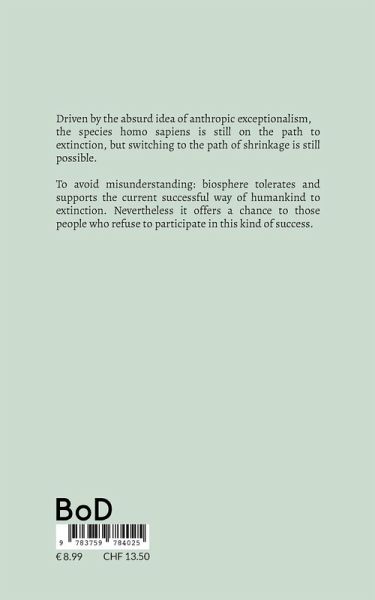 Driven by the absurd idea of anthropic exceptionalism, the species homo sapiens is still on the path to extinction, but switching to the path of shrinkage is still possible. To avoid misunderstanding: biosphere tolerates and supports the current successful way of humankind to extinction. Nevertheless it offers a chance to those people who refuse to participate in this kind of success.