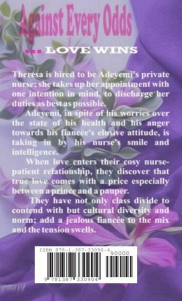 Theresa is hired to be Adeyemi's private nurse; she takes up her appointment with one intention in mind, to discharge her duties as best as possible. Adeyemi, in spite of his health challenge, is taking in by his nurse's smile and intelligence. When love enters their cosy nurse-patient relationship, they discover that true love comes with a price, especially between a prince and a pauper. They have not only class divide to contend with, but cultural diversity and norm; add a jealous fiancée to the mix and the tension swells.