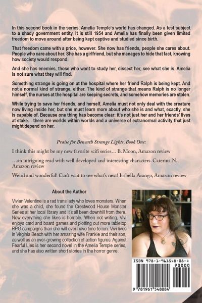 In this second book in the series, Amelia Temple's world has changed. As a test subject to a shady government entity, it is 1954 and she has finally been given limited freedom to move around after being kept captive and studied since birth. That freedom came with a price, however. She now has friends, people she cares about. People who care about her. She has a girlfriend, but she manages to hide that fact, knowing how society would respond. And she has enemies, those who want to study her, dissect her, see what she is. Amelia is not sure what they will find. Something strange is going on at the hospital where her friend Ralph is being kept. And not a normal kind of strange, either. The kind of strange that means Ralph is no longer himself, the nurses at the hospital are keeping secrets, and somehow memories are stolen. In trying to save her friends, and herself, Amelia must not only deal with the creature now living inside her, but she must learn more about who she is and what, exactly, she is capable of. Because one thing has become clear: it's not just her and her friends' lives at stake... there are worlds within worlds and a universe of extranormal activity that just might depend on her.