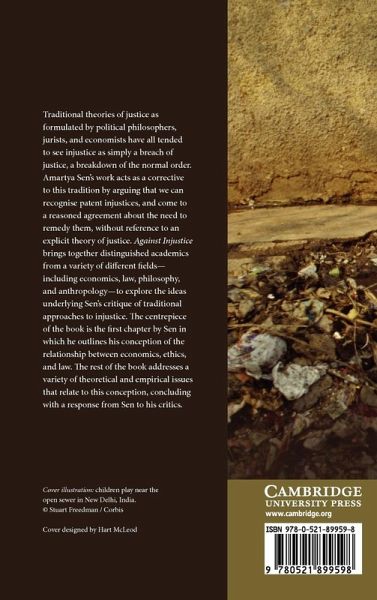 Traditional theories of justice as formulated by political philosophers, jurists and economists have all tended to see injustice as simply a breach of justice, a breakdown of the normal order. Amartya Sen's work acts as a corrective to this tradition by arguing that we can recognise patent injustices, and come to a reasoned agreement about the need to remedy them, without reference to an explicit theory of justice. Against Injustice brings together distinguished academics from a variety of different fields - including economics, law, philosophy and anthropology - to explore the ideas underlying Sen's critique of traditional approaches to injustice. The centrepiece of the book is the first chapter by Sen in which he outlines his conception of the relationship between economics, ethics and law. The rest of the book addresses a variety of theoretical and empirical issues that relate to this conception, concluding with a response from Sen to his critics.