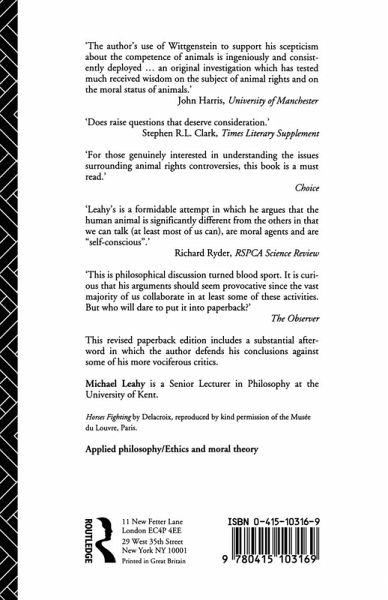 The Western world is currently gripped by an obsessive concern for the rights of animals - their uses and abuses. In this book, Leahy argues that this is a movement based upon a series of fundamental misconceptions about the basic nature of animals. This is a radical philosophical questioning of prevailing views on animal rights, which credit animals with a self-consciousness like ours. Leahy's conclusions have implications for issues such as bloodsports, meat eating and fur trading.