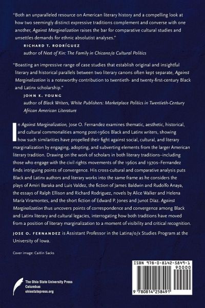 In Against Marginalization, Jose O. Fernandez examines thematic, aesthetic, historical, and cultural commonalities among post-1960s Black and Latinx writers, showing how such similarities have propelled their fight against social, cultural, and literary marginalization by engaging, adopting, and subverting elements from the larger American literary tradition. Drawing on the work of scholars in both literary traditions-including those who engage with the civil rights movements of the 1960s and 1970s-Fernandez finds intriguing points of convergence. His cross-cultural and comparative analysis puts Black and Latinx authors and literary works into the same frame as he considers the plays of Amiri Baraka and Luis Valdez, the fiction of James Baldwin and Rudolfo Anaya, the essays of Ralph Ellison and Richard Rodriguez, novels by Alice Walker and Helena María Viramontes, and the short fiction of Edward P. Jones and Junot Díaz. Against Marginalization thus uncovers points of correspondence and convergence among Black and Latinx literary and cultural legacies, interrogating how both traditions have moved from a position of literary marginalization to a moment of visibility and critical recognition.