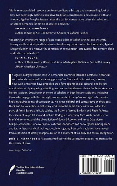 In Against Marginalization, Jose O. Fernandez examines thematic, aesthetic, historical, and cultural commonalities among post-1960s Black and Latinx writers, showing how such similarities have propelled their fight against social, cultural, and literary marginalization by engaging, adopting, and subverting elements from the larger American literary tradition. Drawing on the work of scholars in both literary traditions-including those who engage with the civil rights movements of the 1960s and 1970s-Fernandez finds intriguing points of convergence. His cross-cultural and comparative analysis puts Black and Latinx authors and literary works into the same frame as he considers the plays of Amiri Baraka and Luis Valdez, the fiction of James Baldwin and Rudolfo Anaya, the essays of Ralph Ellison and Richard Rodriguez, novels by Alice Walker and Helena María Viramontes, and the short fiction of Edward P. Jones and Junot Díaz. Against Marginalization thus uncovers points of correspondence and convergence among Black and Latinx literary and cultural legacies, interrogating how both traditions have moved from a position of literary marginalization to a moment of visibility and critical recognition.