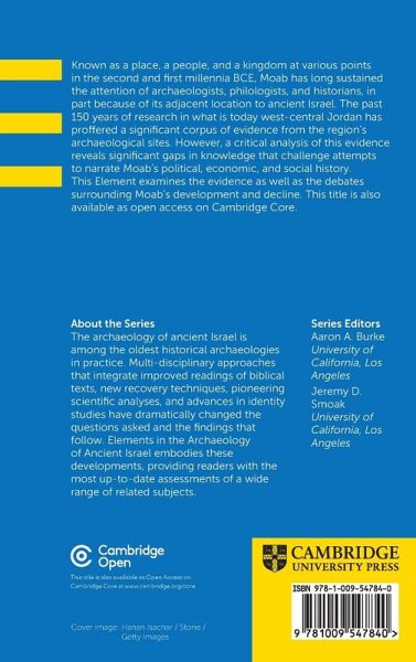 Known as a place, a people, and a kingdom at various points in the second and first millennia BCE, Moab has long sustained the attention of archaeologists, philologists, and historians, in part because of its adjacent location to ancient Israel. The past 150 years of research in what is today west-central Jordan has proffered a significant corpus of evidence from the region's archaeological sites. However, a critical analysis of this evidence reveals significant gaps in knowledge that challenge attempts to narrate Moab's political, economic, and social history. This Element examines the evidence as well as the debates surrounding Moab's development and decline. This title is also available as open access on Cambridge Core.