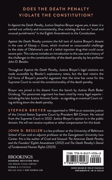 Does the death penalty violate the Constitution? In Against the Death Penalty, Justice Stephen Breyer argues that it does; that it is carried out unfairly and inconsistently and, thus, violates the ban on ""cruel and unusual punishments"" specified by the Eighth Amendment to the Constitution.