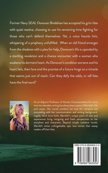 Fighting for others gave him purpose; fighting for love gave him hope Former Navy SEAL Donovan Bradshaw has accepted his grim fate with quiet resolve, choosing to use his remaining time fighting for those who can't defend themselves. Yet, a voice haunts him, whispering of a prophecy unfulfilled. When an old friend emerges from the shadows with a plea for help, Donovan's life is upended by a startling revelation and a chance encounter with a woman who awakens his dormant heart. As Donovan's condition worsens and his heart fails, their love and the promise of a future hinge on a miracle that seems just out of reach. Can they defy the odds, or will fate have the final word? Stand-alone or as book 4.5 of the Succouri Saga Series. Sweet romance / Action and adventure / Magical realism