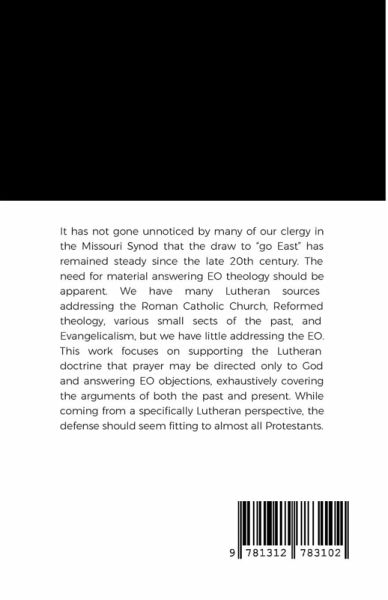 It has not gone unnoticed by many of our clergy in the Missouri Synod that the draw to "go East" has remained steady since the late 20th century. The need for material answering EO theology should be apparent. We have many Lutheran sources addressing the Roman Catholic Church, Reformed theology, various small sects of the past, and Evangelicalism, but we have little addressing the EO. This work focuses on supporting the Lutheran doctrine that prayer may be directed only to God and answering EO objections, exhaustively covering the arguments of both the past and present. While coming from a specifically Lutheran perspective, the defense should seem fitting to almost all Protestants.