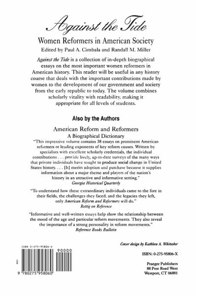 Against the Tide is a collection of in-depth biographical essays on the most important women reformers in American history. This reader will be useful in any history course that deals with the important contributions made by women to the development of our government and society from the early republic to today. The volume combines scholarly vitality with readability, making it appropriate for all levels of students.
