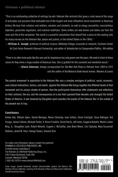 Foreword: Vietnam and Iraq Introduction Part I: Beginnings Chapter 1: The Need to Remember Chapter 2: The Impossible Victory:Vietnam Part II: The War at Home Chapter 3: From Ha Ha McNamara Chapter 4: My Vietnam Chapter 5: Burning Illusions:The Napalm Campaign Chapter 6: The Responsibility of Intellectuals Chapter 7: Declaration of Independence from the War in Vietnam Chapter 8: Why I Joined the Resistance Chapter 9: A Time to Say No Chapter 10: Poems Chapter 11: Chicago 1968: Street-Fighten' Man Chapter 12: From the Suburbs to Saigon Chapter 13: Vietnam Comes to Lexington: Memorial Day 1971 Part III: Soldiers against the War Chapter 14: What Did You Do In the Class War, Daddy? Chapter 15: War Memorial: Staying Close to a Buddy Twenty-five Years after His Death Chapter 16: American War Crimes and Vietnam Veterans Chapter 17: The War against the War Part IV: Consequences Chapter 18: Consequences of the Vietnam War and Government Policies of the Seventies Chapter 19: Passing It On: The Movement for Teaching the Vietnam War in Schools Chapter 20: Visiting Vietnam Chapter 21: Chicago 1996: Despite Corporate Media Silence Many Powerful Protests Part V: Conclusions Chapter 22: What I Got Out of the War Chapter 23: Cherishing Vistas, Embracing Human Beings: Toward Peace and Freedom Chapter 24: Deja Vu All Over Again