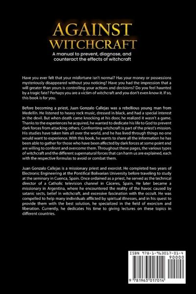 Have you ever felt that your misfortune isn't normal? Has your money or possessions mysteriously disappeared without you noticing? Have you had the impression that a will greater than yours is controlling your actions and decisions? Do you feel haunted by a tragic fate? Perhaps you are a victim of witchcraft and you don't even know it. If so, this book is for you. Before becoming a priest, Juan Gonzalo Callejas was a rebellious youth from Medellín. He listened to heavy rock music, dressed in black, and had a special interest in the devil. But when death came knocking at his door, he realized it wasn't a game. Thanks to the experiences he acquired, he wanted to dedicate his life to God to prevent dark forces from attacking others. Confronting witchcraft is part of the priest's mission. His studies have taken him all over the world, and he has lived through things no one would want to experience. With this book, he wants to share all the information he has been able to gather for those who have been affected by dark forces at some point and are willing to confront and overcome them. Throughout these pages, the various types of witchcraft and the different supernatural forces that can harm us are explained, each with the respective formulas to avoid or combat them. Juan Gonzalo Callejas is a missionary priest and exorcist. He completed two years of Electronic Engineering at the Pontifical Bolivarian University before traveling to study at the seminary in Cuenca, Spain. Once ordained as a priest, he served as the technical director of a Catholic television channel in Cáceres, Spain. He later became a missionary in Argentina, where he encountered the reality of the havoc caused by satanic sects, belief in witchcraft, and excessive fascination with the occult. He was compelled to help many individuals afflicted by spiritual illnesses, and in his quest to provide them with the best solution, he specialized in the field of exorcism and liberation. Currently, he dedicates his time to giving lectures on these topics in different countries.