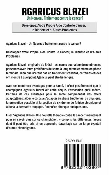 Agaricus Blazei - originaire du Brésil - est connu pour aider de nombreuses personnes avec leurs problèmes de santé à long terme et même en phase terminale. Bien que n'étant pas un traitement standard, certaines études ont montré à quel point Agaricus peut être bénéfique.Avec ses nombreux avantages pour la santé, il n'est pas étonnant que le champignon Agaricus Blazei ait enfin acquis l'exposition qu'il mérite. Certains de ces avantages pour la santé comprennent des effets adaptogènes: aider le corps à s'adapter au stress émotionnel ou physique, la prévention possible et la gestion du syndrome de fatigue chronique et aider à la dermatite atopique. Pour n'en citer que quelques-uns.Lisez 'Agaricus Blazei - Une nouvelle thérapie contre le cancer' maintenant pour en savoir plus sur ce champignon, y compris les différentes façons dont il peut être pris et en apprendre davantage sur un large éventail d'autres champignons.