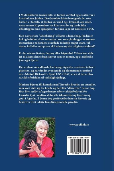 Eg dag bankede en ung mand, Timothy Brooke, på Mariana Stjernas indre dør, og Agartha romanen blev født. Som beskrevet i bogen, blev han reddet af agarthanere efter et skibsforlis ud for Canadas kyst i midten af 20. århundrede og lever nu og har det godt i Agartha, den Hule Jord eller den Indre Verden, om I vil.I Agartha beskrives Jordens Indre Verden. Den er beboet af en avanceret race, som planlægger at komme menneskene på Jordens overflade til hjælp meget snart. I bogen fortæller Timothy sin historie og beskriver livet i dette fem-dimensionelle paradis, som meget sandsynligt vil blive jeres fremtidige hjem.Nogle højdepunkter fra bogen:¿ Agartha - et paradis inden i Jorden¿ På rundtur i Telos og dens omegn¿ Møde med Saint Germain¿ Shamballa - et paradis inden i Jorden¿ Kærlighedsforeningen¿ Troens tempel og et møde med Melchizedek¿ Festligheder i Agartha ¿ Hvordan Jorden vil forandres