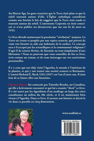 Un jour, un jeune homme, Timothy Brooke, a frappé à la porte de Mariana Stjerna et le roman Agartha est né. Comme le décrit le livre, il a été sauvé par les Agarthiens d'un naufrage au large des côtes canadiennes au milieu du 20e siècle, et est maintenant bien vivant à l'Agartha, la Terre creuse ou le Monde au creux de la Terre si vous préférez. Le roman Agartha décrit le Monde existant à l'intérieur de la Terre. Il est habité par une espèce avancée qui prévoit de venir très bientôt en aide aux habitants de la surface. Dans le livre, Timothy raconte son histoire et décrit la vie dans ce…mehr