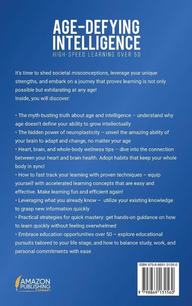 It's time to shed societal misconceptions, leverage your unique strengths, and embark on a journey that proves learning is not only possible but exhilarating at any age! Inside, you will discover: - The myth-busting truth about age and intelligence - understand why age doesn't define your ability to grow intellectually - The hidden power of neuroplasticity - unveil the amazing ability of your brain to adapt and change, no matter your age - Heart, brain, and whole-body wellness tips - dive into the connection between your heart and brain health. Adopt habits that keep your whole body in sync! - How to fast track your learning with proven techniques - equip yourself with accelerated learning concepts that are easy and effective. Make learning fun and efficient again! - Leveraging what you already know - utilize your existing knowledge to grasp new information quickly - Practical strategies for quick mastery: get hands-on guidance on how to learn quickly without feeling overwhelmed - Embrace education opportunities over 50 - explore educational pursuits tailored to your life stage, and how to balance study, work, and personal commitments with ease