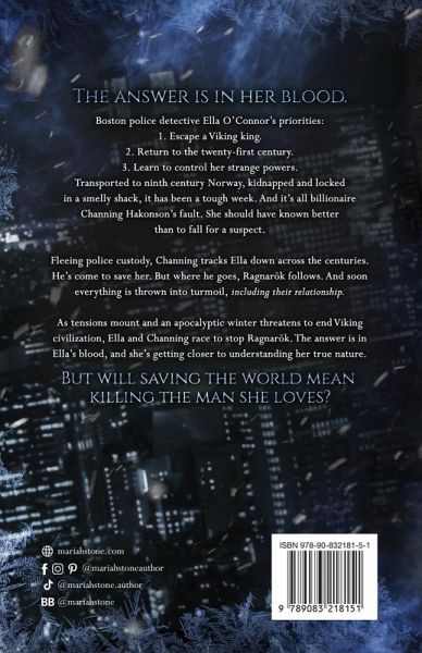 Saving him could destroy the world. Boston police detective Ella O'Connor's priorities:Escape a Viking king. Return to the twenty-first century. Learn to control her strange powers. Transported to ninth century Norway, kidnapped and locked in a smelly shack, it has been a tough week. And it's all billionaire Channing Hakonson's fault. She should have known better than to fall for a suspect. Fleeing police custody, Channing tracks Ella down across the centuries. He's come to save her. But where he goes, Ragnarök follows. And soon everything is thrown into turmoil, including their relationship. As tensions mount and an apocalyptic winter threatens to end Viking civilization, Ella and Channing race to stop Ragnarök. The answer is in Ella's blood, and she's getting closer to understanding her true nature. But will saving the world mean killing the man she loves? This is book two in the Fated trilogy and is NOT a standalone. The trilogy comes to a satisfying end in book three.