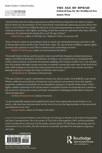Over the last two decades Oprah Winfrey's journey has taken her from talk show queen to-as Time Magazine has asserted-"one of the most important figures in popular culture." Through her talk show, magazine, website, seminars, charity work, and public appearances, her influence in the social, economic, and political arenas of American life is considerable and until now, largely unexamined. In The Age of Oprah, media scholar and journalist Janice Peck traces Winfrey's growing cultural impact and illustrates the fascinating parallels between her road to fame and fortune and the political-economic rise of neoliberalism in this country. While seeking to understand Oprah's ascent to the near- iconic status that she enjoys today, Peck's book provides a fascinating window into the intersection of American politics and culture over the past quarter century.