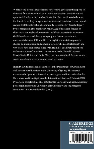 Age of Secession focuses on recognition, a crucial moment in the life of a secessionist movement. Griffiths offers a novel analysis of secessionist movements between 1816 and 2011, explaining how state response is shaped by international and domestic factors, when conflict is likely, and why states have proliferated since 1945.