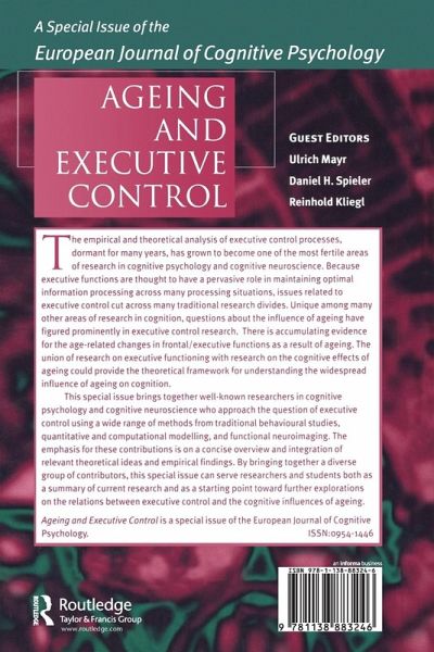 Introduction; Frontal tests and models for cognitive ageing; A research strategy for investigating group differences in a cognitive construct: Application to ageing and executive processes; Is there an age deficit in the selection of mental sets? Adult age differences in goal activation and goal maintenance; The transient nature of executive control processes in younger and older Adults; Inhibitory control over the present and the past; Executive-process interactive control: A unified computational theory for answering 20 questions (and more) about cognitive ageing; Modelling cognitive control in task switching and ageing; Beyond resources: Formal models of complexity effects and age differences in working memory; Modelling age-related changes in information processing; Age-related changes in brain-behaviour relationships: Evidence from event-related functional MRI studies; Neurocognitive ageing and storage of executive processes; The impact of aerobic activity on cognitive function in older adults: A new synthesis based on the concept of executive control