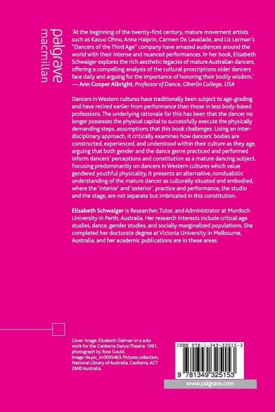 'At the beginning of the twenty-first century, mature movement artists such as Kazuo Ohno, Anna Halprin, Carmen De Lavallade, and Liz Lerman's 'Dancers of the Third Age' company have amazed audiences around the world with their intense and nuanced performances. In her book, Elisabeth Schwaiger explores the rich aesthetic legacies of mature Australian dancers, offering a compelling analysis of the cultural proscriptions older dancers face daily and arguing for the importance of honoring their bodily wisdom.' - Ann Cooper Albright, Professor of Dance, Oberlin College, USA