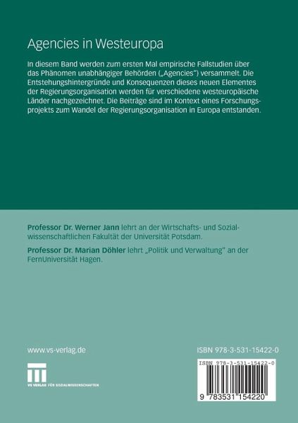 In diesem Band werden zum ersten Mal empirische Fallstudien über das Phänomen unabhängiger Behörden ("Agencies") versammelt. Die Entstehungshintergründe und Konsequenzen dieses neuen Elementes der Regierungsorganisationwerden für verschiedene westeuropäische Länder nachgezeichnet. Die Beiträge sind im Kontext eines Forschungsprojekts zum Wandel der Regierungsorganisation in Europa entstanden.