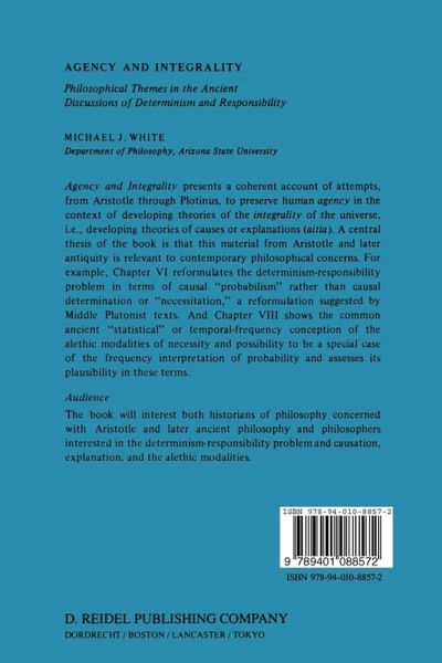 It is not very surprising that it was no less true in antiquity than it is today that adult human beings are held to be responsible for most of their actions. Indeed, virtually all cultures in all historical periods seem to have had some conception of human agency which, in the absence of certain responsibility-defeating conditions, entails such responsibility. Few philosophers have had the temerity to maintain that this entailment is trivial because such responsibility-defeating conditions are always present. Another not very surprising fact is that ancient thinkers tended to ascribe integrality to "what is" (to on). That is, they typically regarded "what is" as a cosmos or whole with distinguishable parts that fit together in some coherent or cohesive manner, rather than either as a "unity" with no parts or as a collection containing members (ta onta or "things that are") standing in no "natural" relations to one another. 1 The philoso phical problem of determinism and responsibility may, I think, best be characterized as follows: it is the problem of preserving the phenomenon of human agency (which would seem to require a certain separateness of individual human beings from the rest of the cosmos) when one sets about the philosophical or scientific task of explaining the integrality of "what is" by means of the development of a theory of causation or explanation ( concepts that came to be lumped together by the Greeks under the term "aitia") .