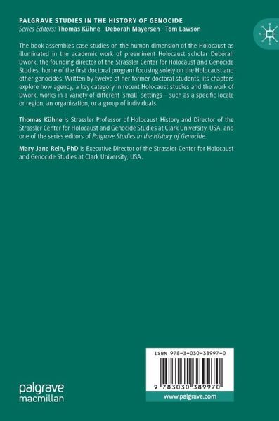 The book assembles case studies on the human dimension of the Holocaust as illuminated in the academic work of preeminent Holocaust scholar Deborah Dwork, the founding director of the Strassler Center for Holocaust and Genocide Studies, home of the first doctoral program focusing solely on the Holocaust and other genocides. Written by fourteen of her former doctoral students, its chapters explore how agency, a key category in recent Holocaust studies and the work of Dwork, works in a variety of different 'small' settings - such as a specific locale or region, an organization, or a group of individuals.