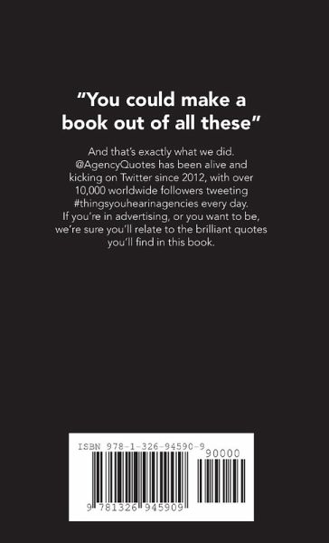 "You could make a book out of all these" And that's exactly what we did. @AgencyQuotes has been alive and kicking on Twitter since 2012, with over 10,000 worldwide followers tweeting #thingsyouhearinagencies every day. If you're in advertising, or you want to be, we're sure you'll relate to the brilliant quotes you'll find in this book.